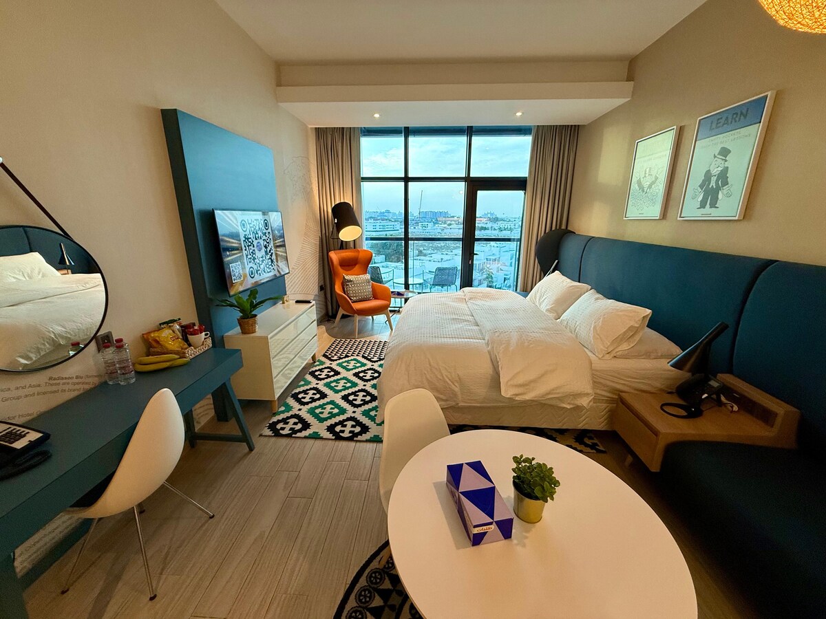 Opplev all prakten i Dubai, og hvil deg komfortabelt inne i vårt oppgraderte luksusstudio med Netflix, som ligger ved siden av Nakheel Mall at the Palm. Nyt den fantastiske utsikten fra din private balkong, og nyt tilgang til de beste landemerkene, spisesteder, gratis tilgang til stranden og opplevelser byen har å by på. Slapp av i det luksuriøse treningsområdet eller ta en forfriskende dukkert i det 25 meter lange svømmebassenget. Hvis du verdsetter friskhet, kan du benytte deg av vår gratis rengjøringstjeneste, som er tilgjengelig to ganger i uken.