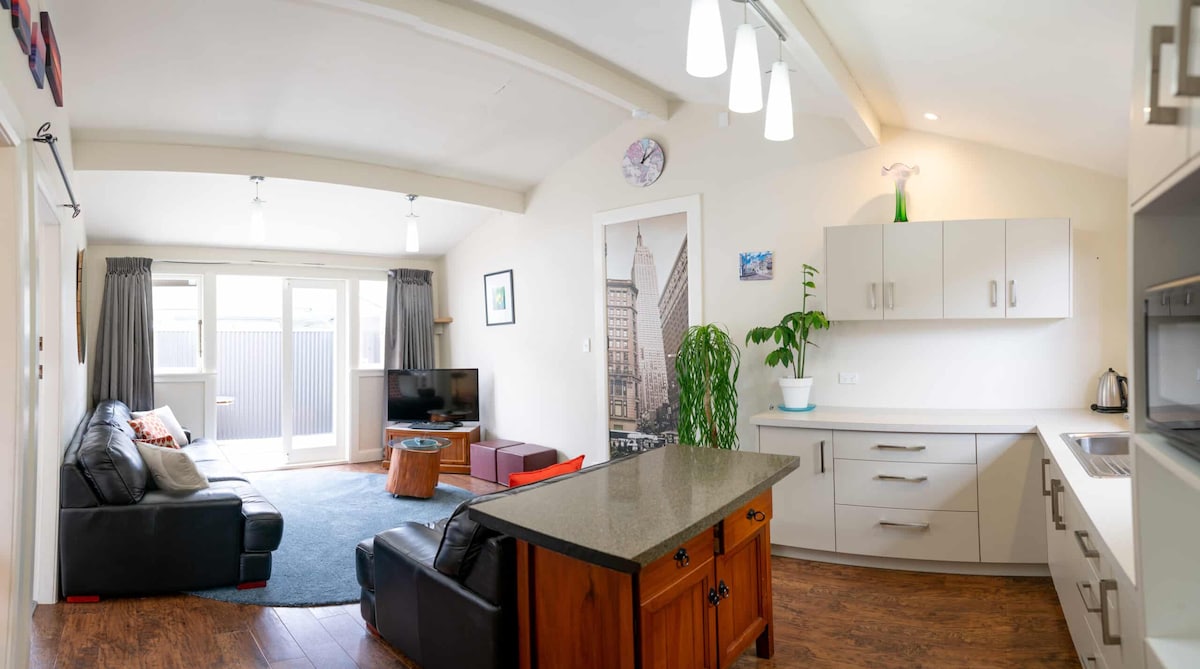 Velkommen til din fredelige flukt i hjertet av vår sjarmerende lille by! Denne innbydende og moderne leiligheten ligger i hele første etasje i et nyoppusset hus, og tilbyr et virkelig komfortabelt og fredelig tilfluktssted. Den ligger på åsene med utsikt over Feilding og har en fantastisk utsikt over den pittoreske byen vår.