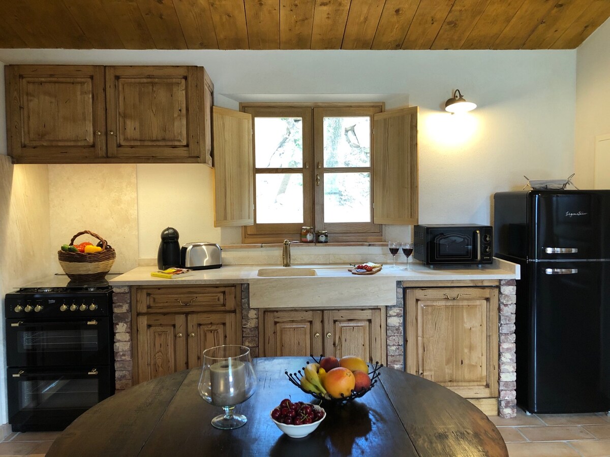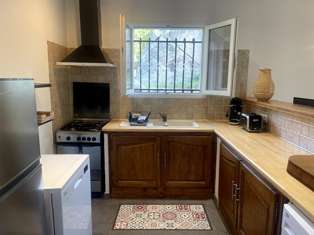 Lite hus T1, i stein, sauegårdsstil, med alle bekvemmeligheter, nytt utstyr, for 2 personer eller par med et lite barn, perfekt for et rolig opphold, ligger i en liten landsby på landet. Casetta er omgitt av trær og grøntområder. Terrassen er i tre, og ligger i skyggen. Ideelt plassert for å oppdage strender, maquis, fjell, elver, skoger .... nær alt og Porto-Vecchio og dens butikker (10 min).