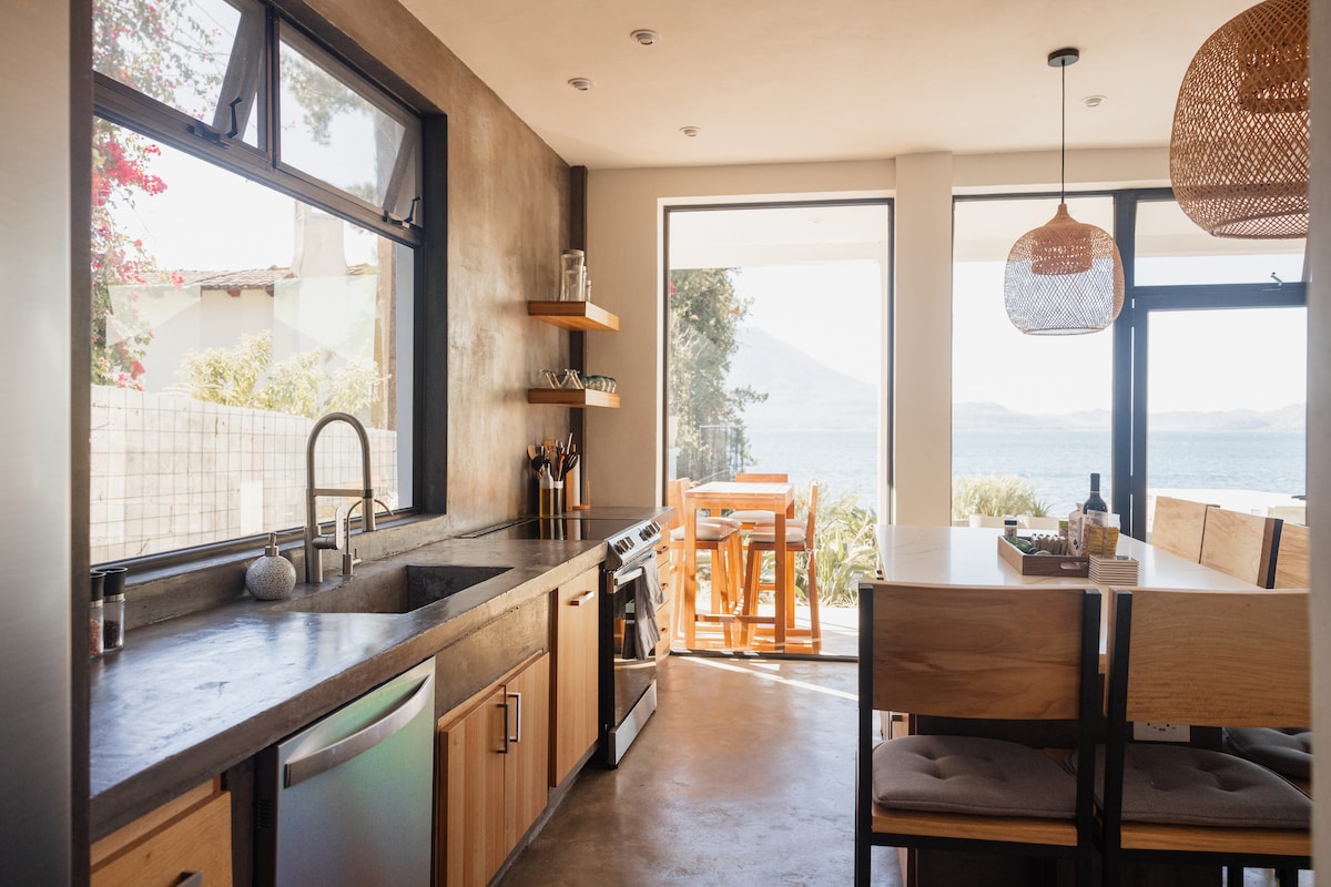 Casa Amate er et unikt hjem med glassfront bygget inn i fjellsiden med utsikt over en av verdens vakreste ferskvann. Med tre soverom og tre bad, med plass til seks, er dette det perfekte stedet å slappe av, slappe av og nyte den spektakulære utsikten over innsjøen og de tre vulkanene. Huset er bygget inn i fjellsiden, men likevel rett ved innsjøen, og det har fire etasjer med mange terrasser. Stedet er definert av fjellsiden, glass, betong, tre og lys.