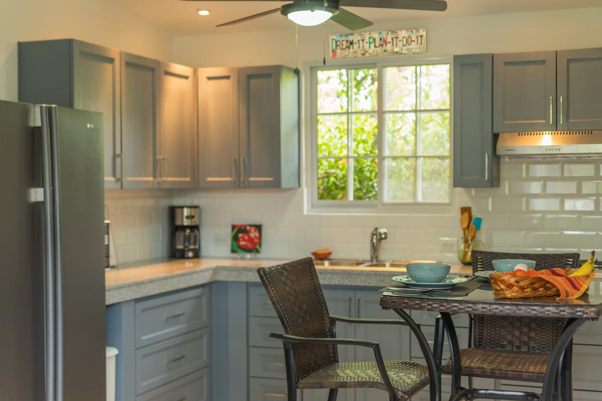 Fullt møblert, vakker casita med ett soverom på 500 kvadratfot med et åpent stue-/spisekonsept. Fullt utstyrt kjøkken med nye apparater og benkeplater i granitt. King size-seng på soverommet, og det er god oppbevaring. Sofaen i stuen har plass til to. ** En flott eiendom for grupper, da vi har to casitas og to studioer på eiendommen. Lei alle fire og ha stedet for deg selv!