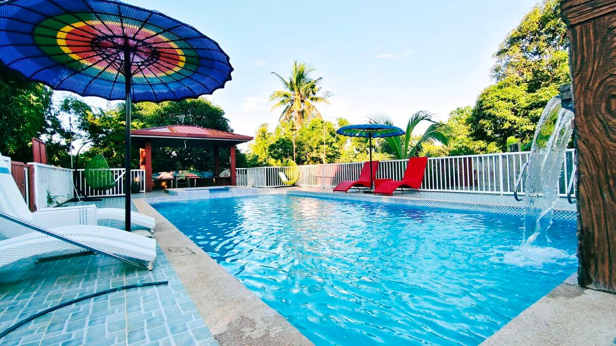 Ligger ved foten av Sierra Madre-fjellene. Fem minutter fra MacArthur-motorveien. Nyt en avslappende tid i dette meksikansk-inspirerte utleiestedet. Slapp av i svømmebassenget vårt, privat terrasse med grill. Ren luft og en himmel fylt med stjerner. Manoag-kirken ligger 25 minutter unna, San Fabian-stranden ca. 45 minutter unna. Baguio, ca. én time. Måltider på forespørsel. En naturskjønn fjelltur i nærheten. Internett med høy hastighet for arbeid på nettet.