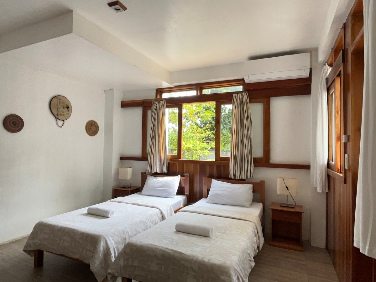 These rooms accommodate up to a family of 3. Includes WiFi, Hot/Cold shower, TV with cable, and AC. Free breakfast and airport transportation. Room service and laundry service available.