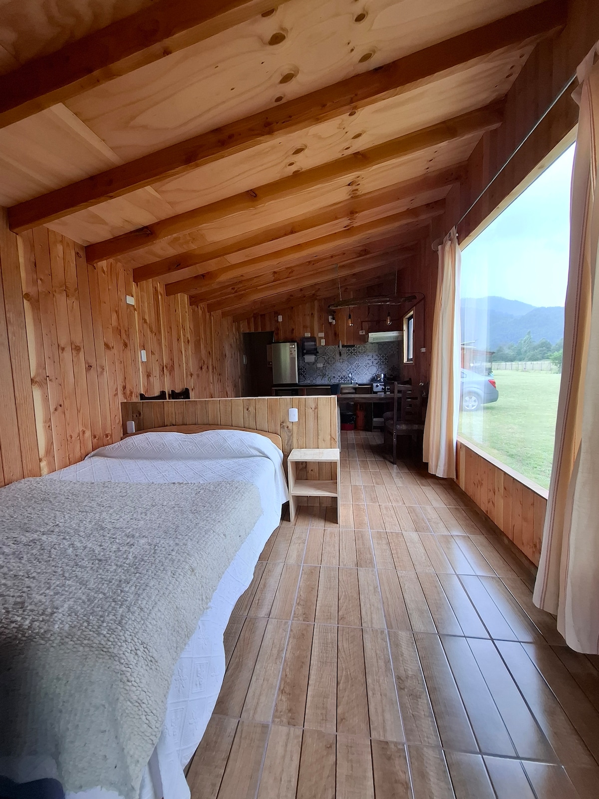 Cabaña de lujo tipo loft con finas terminaciones, inserta en un bosque centenario de arboles nativos. Baño en suite, walking closet, cocina integrada completamente equipada. Combustión a leña, estufa toyotomi. Gran terraza, parrilla, mesa en el bosque para asados, piscina, estacionamiento privado, smart tv, netflix, tv cable y wifi fibra optica.