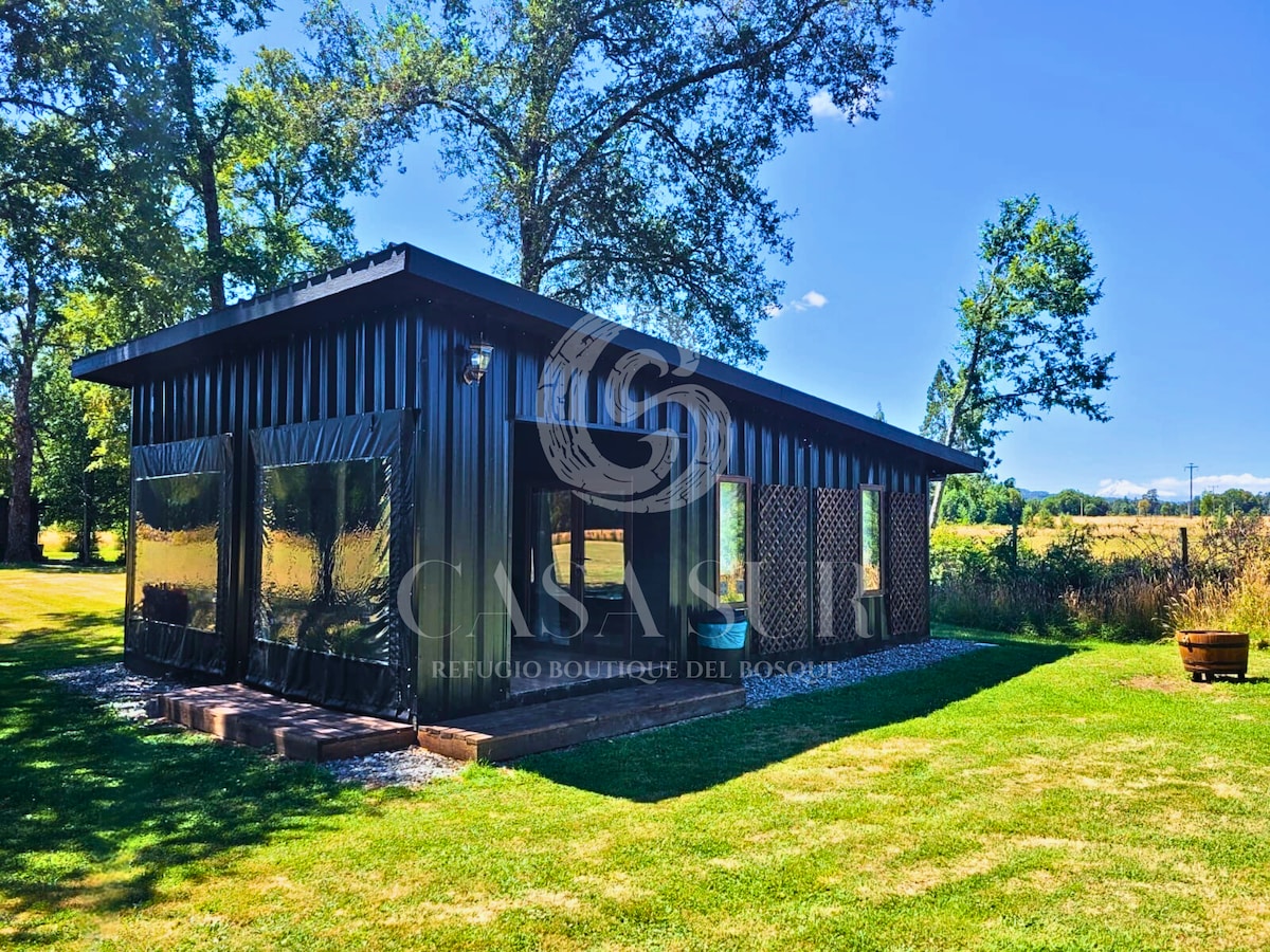 Un lugar único y mágico donde podrás disfrutar desde un cómodo espacio de las maravillas de la naturaleza. Sumérgete en medio de un bosque sureño, y endémico de nuestro país Chile; característico de zonas con gran cantidad de lagos, ríos, cascadas , volcanes y más, rodeado de diversas especies de flora, fauna y funga nativa. Además estamos a pasos de Termas Geométricas y Termas el Rincón imperdibles de este lugar. Ven y Disfruta de la experiencia Refugios de Bosque. "Conexión Natural"
