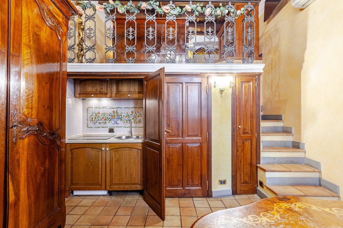 Gratis rengjøringsgebyr! - Leilighet på 2 nivåer (se bilder) med stue og hovedsoverom, perfekt for en familie eller for å bo hos venner opptil 4 personer, som ligger inne i den historiske bygningen "Casa all 'Arco Cenci Tavani" fra XVI århundre og gangavstand fra sentrum hvor du kan finne de beste monumentene og attraksjonene. Heis tilgjengelig. Komplett med alle bekvemmeligheter som kjøkken, TV-er koblet til strømmetjenester som Netflix i alle rom, raskt trådløst nettverk, safe og håndklær.