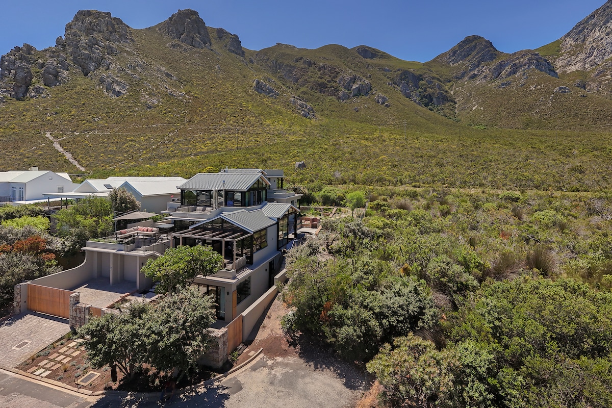 Whale Huys er en villa med selvhushold med panoramautsikt over Walker Bay og Klein Rivier-fjellene. Perfekt for en avslappende ferie, bare to timer fra Cape Town. Med den fantastiske utsikten og bare lydene fra naturen, virker Whale Huys langt unna det travle livet i hverdagen, men ligger i nærheten av vingårdene og de kjente landrestaurantene som området er kjent for. Det er mange utendørs- og kulturaktiviteter. Bare fem minutter fra Gansbaai for shopping.