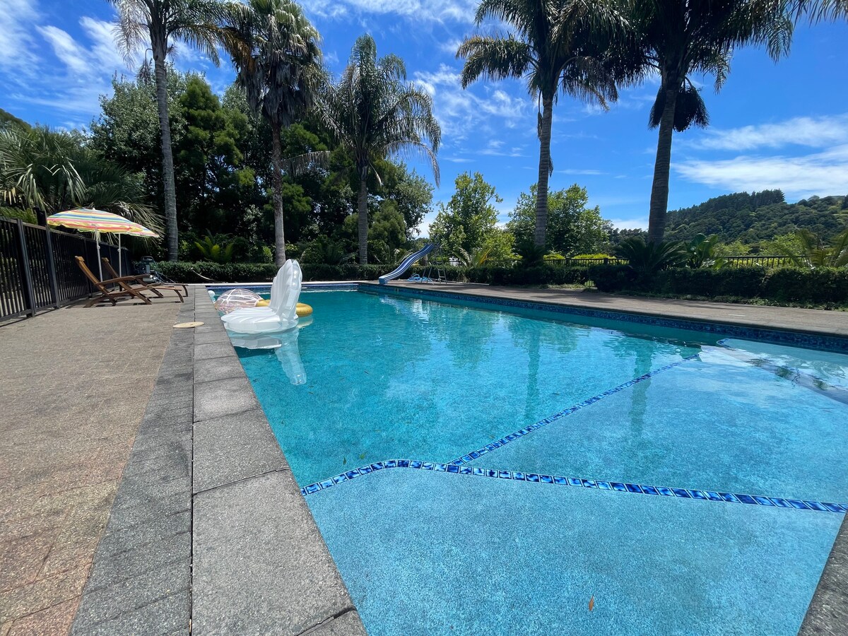 Vertskapet er et pensjonert kiwi-par som gjerne viser hva NZ har å by på – ønsker å møte vennlige, pålitelige besøkende. Gjestehuset vender mot baksiden av hovedhuset, adskilt av bassenget og spa-området. Stue, kjøkkenkrok, soverom, bad, overbygd balkong, bruk av basseng, spa og blomsterhager. Vaskerom i hovedhuset og sikker parkering på stedet. Nær landsbyen, delvis landlig med sauer på grensegjerdet. Må være hundevennlig (to vennlige kjæledyr på stedet).