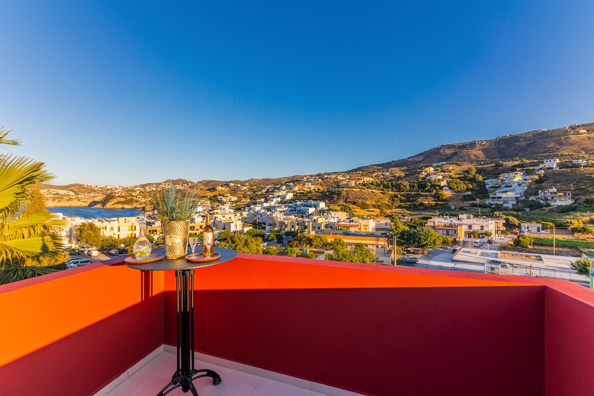 Det er en leilighet som er pent dekorert i øystil, blått og hvitt. Den blå fargen på havet og det hvite skummet av bølgene (den forskjellige dekorasjonen i hvert rom gjør dem unike og gir deg følelsen av å flykte) med kjøkkenkrok, toalett, balkong eller terrasse som har utsikt over havet!Komplekset ligger mellom to strender: den rolige stranden i Lygaria og den kosmopolitiske Agia Pelagia-stranden. Vi ligger 16 minutter med bil fra Kazantzakis flyplass og 18 minutter fra Heraklio havn (ankomst og avgang til Santorini, Pereus)!