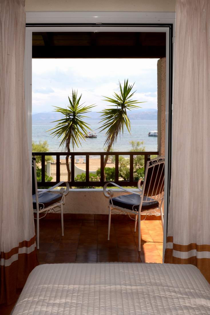 MHTE 0829K132K04576O1 1st floor apartment in a villa in Corfu-Kavos Our house is located in Kokkinia-Asprokavos, South Corfu on a long sandy beach, some footsteps from the sea water, just opening the front garden gate. Private garden, private entrance and parking area.