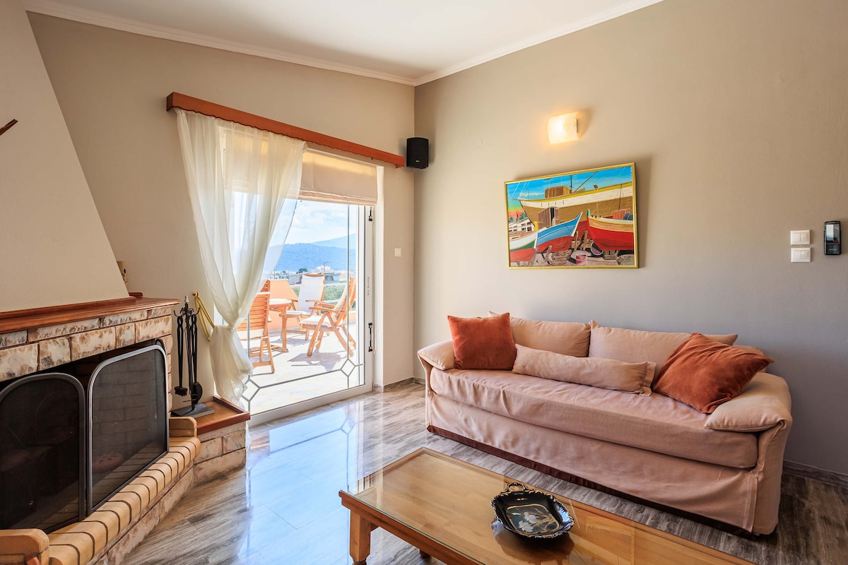 Fullt utstyrt hus med fantastisk utsikt i byen Nafplio, Palamidi og Bourtzi slott. Ideelt sted, i nærheten av alle de historiske stedene i Argolida og de fantastiske strendene i Tolo og Nafplio. Vennlig gjestfrihet.