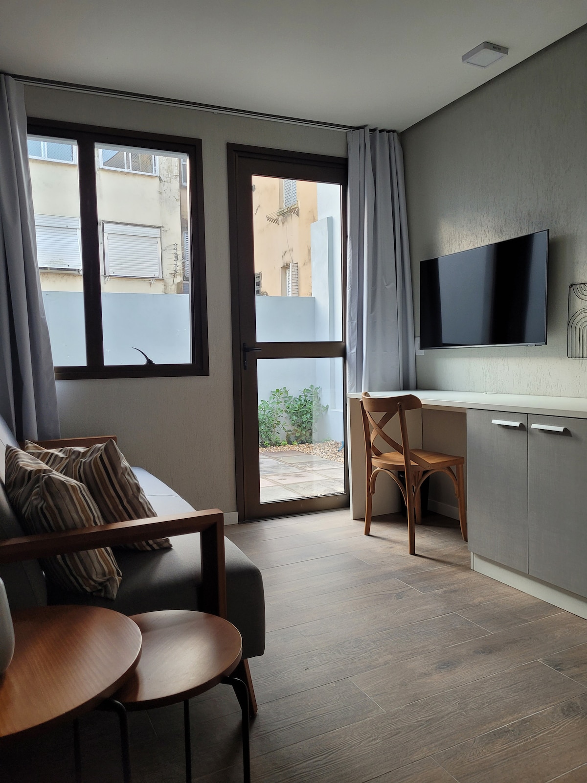 Abrace a simplicidade neste lugar minimalista e aconchegante no coração de Porto Alegre. Studio Tri está localizado no bairro Cidade Baixa, o mais boêmio da capital. Neste bairro encontram-se diversas atrações como: bares, restaurantes, Parque Farroupilha, o famoso bar Opinião, Auditório Araújo Viana e muitos outros. Também conta com supermercados, farmácias e todos os recursos necessários para uma ótima estadia. Seja bem vind@ e curta a experiência de hospedar-se no Studio Tri.