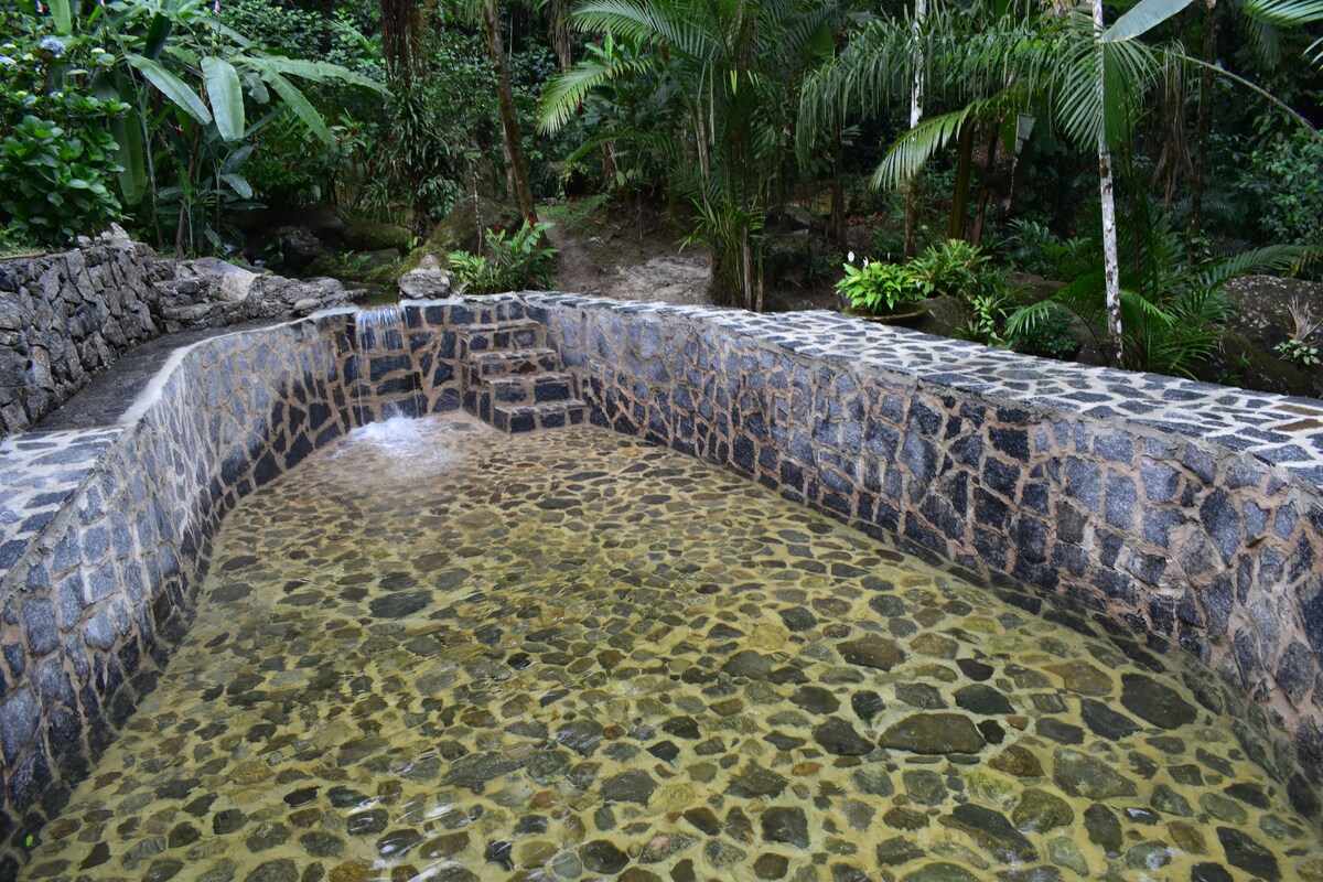 Miljøvennlig og privat🌿 hytte i Atlanterhavsskogen med eksklusiv tilgang til elven og mulighet for fuglekikking. 15 minutter fra det historiske sentrum i Paraty, med enkel tilgang med bil og buss som stopper ved døren. Utstyrt med en kingsize-seng, økologisk peis, soloppvarmet dusj, balkong og utstyrt kjøkken. Valgfri hjemmelaget frokost, sjekk tilgjengelighet og priser. Det perfekte tilfluktsstedet for dem som søker fred, natur og bevisst komfort.