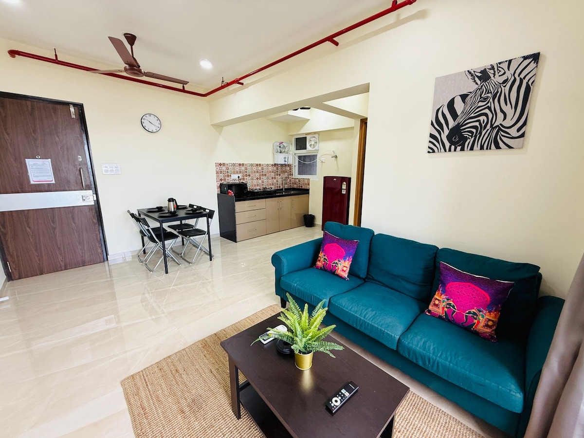 Slapp av i en stilig og fredelig 1BHK i hjertet av Bandra, hvor Mumbai's pulserende kultur møter moderne komfort. Dette gjennomtenkt designede stedet ligger i et av byens tryggeste og mest ettertraktede nabolag, og tilbyr det perfekte tilfluktsstedet - enten du er her for arbeid eller fritid. En veldesignet leilighet på 550 kvm som tilbyr en romslig stue, et koselig soverom og et funksjonelt kjøkken - perfekt for enslige reisende, par og forretningsfolk som leter etter komfort og stil.