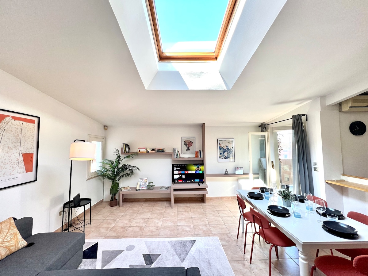 Loft/Toppleilighet ligger i sentrum, ved siden av den historiske Piazza Garibaldi, hjertet av Parma. Loftsleiligheten er designet av en kjent arkitekt, som har gjort dette rommet unikt. Stuen med en stor og lys stue har utsikt over takene i Parma med en eksklusiv terrasse. For å fullføre et fantastisk skreddersydd kjøkken. Moderne dobbeltrom med garderobeskap og bad med boblebad for å slappe av etter en kald vinterdag.