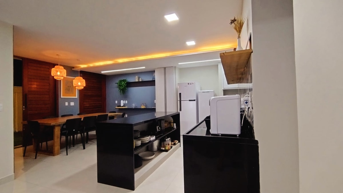 Luksuriøst strandhus rett ved en av de vakreste strendene i det nordøstlige Brasil. Med seks soverom, 6,5 bad, hvorav fire er suiter, to flotte terrasser ved stranden, basseng, boblebad, fullt utstyrt kjøkken, grill med gourmetområde, 11 parkeringsplasser med privat inngang. Vi har lagt mye omtanke i å gjenoppbygge dette familiehjemmet.
