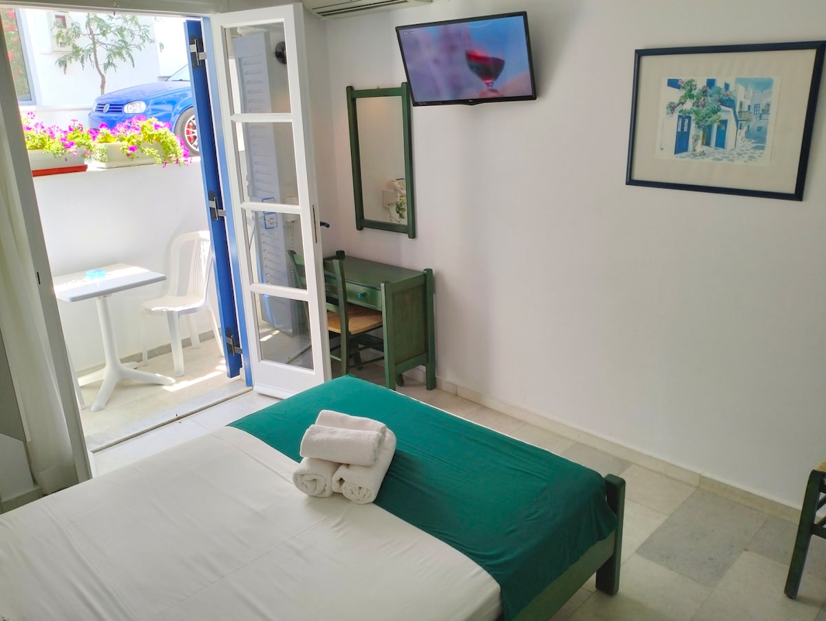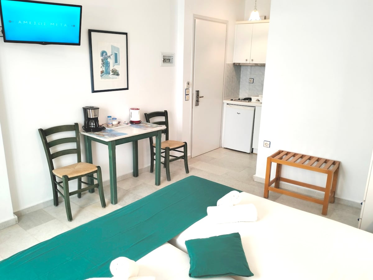 STUDIO 1 -double STUDIO for 2 persons cozy fully renovated studio in the pittoresque fishers village of Aliki -south part of Paros Island It consists of 1 room (double bed), kitchenette (fridge, electric stove, kettle, etc.), bathroom, balcony (table) , air -conditioning , free wi-fi , hairdryer, writing desk, coffee maker, everything brand new !!