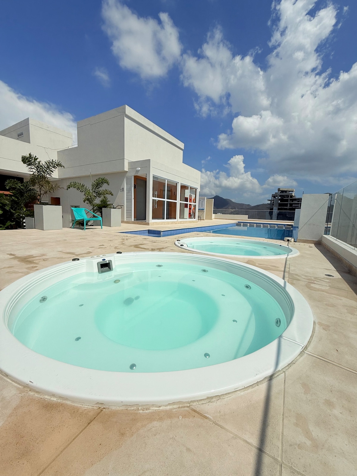 Eksklusiv ny leilighetssuite i turistdistriktet i marinaen i Santa Marta. Fullt møblert, ligger i 9. etasje, moderne design, balkong. Leiligheten ligger i samme bygning som AC by Marriot-hotellet, og fellesområdene deles med hotellet: halvolympisk svømmebasseng med bar, internasjonal restaurant, treningsstudio, spa. Spektakulær utsikt over havet, aircondition. Den har alt du trenger for å ha en utmerket opplevelse på høyeste nivå.