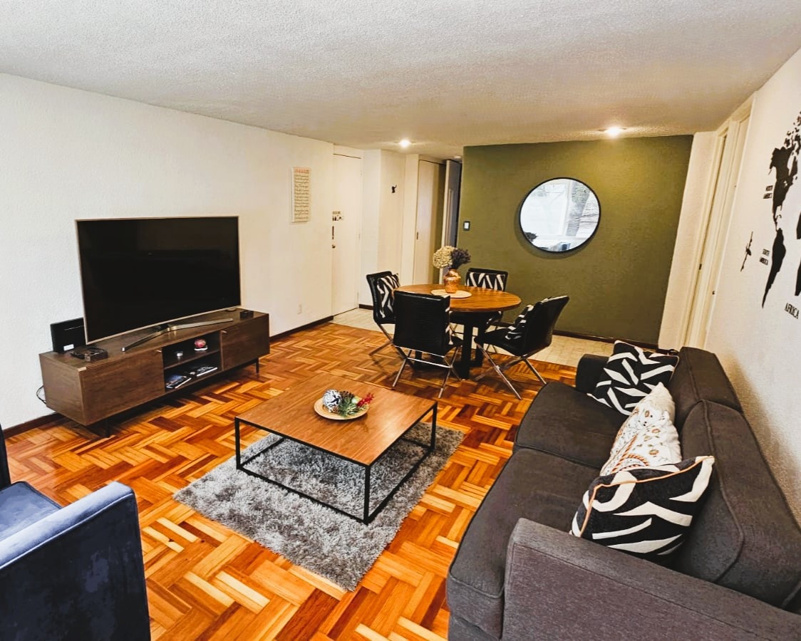 Opplev flotte øyeblikk i en spektakulær leilighet (utsikt over gaten). Et sted fullt av fasiliteter i hjertet av Polanco, det mest eksklusive området i Mexico City. Daglig rengjøring. Den har én queen size-seng, én dobbeltseng, ett bad, utstyrt kjøkken, kjøleskap, mikrobølgeovn, smart-TV med kabel-TV, trådløst nettverk, individuell klimaanlegg, dørmann og døgnåpen overvåking. Treningsstudio, boblebad, én parkeringsplass.