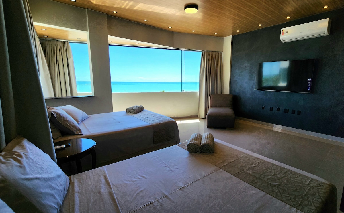 Luksusvilla. Leilighet med balkong mot sjøen i Pajuçara, panoramautsikt, fantastisk utsikt mot de naturlige bassengene. Suite Most High Standard, stilig, komfortabel og eksklusiv. Dristig arkitektur for maksimal komfort. Ny, moderne bygning, døgnåpen resepsjon, basseng og takterrasse med panoramautsikt, badstue, hydro, treningsstudio, spillrom, lekerom og privat parkering. I den beste beliggenheten ved havet, i den mest sofistikerte og innovative utviklingen av Maceió.