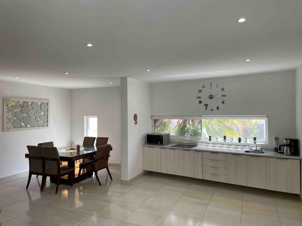 Komfortabelt hus, romslig med tre soverom, to har hver en dobbeltseng og ett med to enkeltsenger, to komplette bad, kjøkken, stue, vaskesenter, i et veldig rolig og trygt område. Med alt du trenger for å føle deg som hjemme, spesielt å besøke Aguascalientes eller for jobbopphold, på grunn av nærheten til industriområdet nord for Aguascalientes. Utmerket for korte eller lange opphold Høy hastighet på internett.