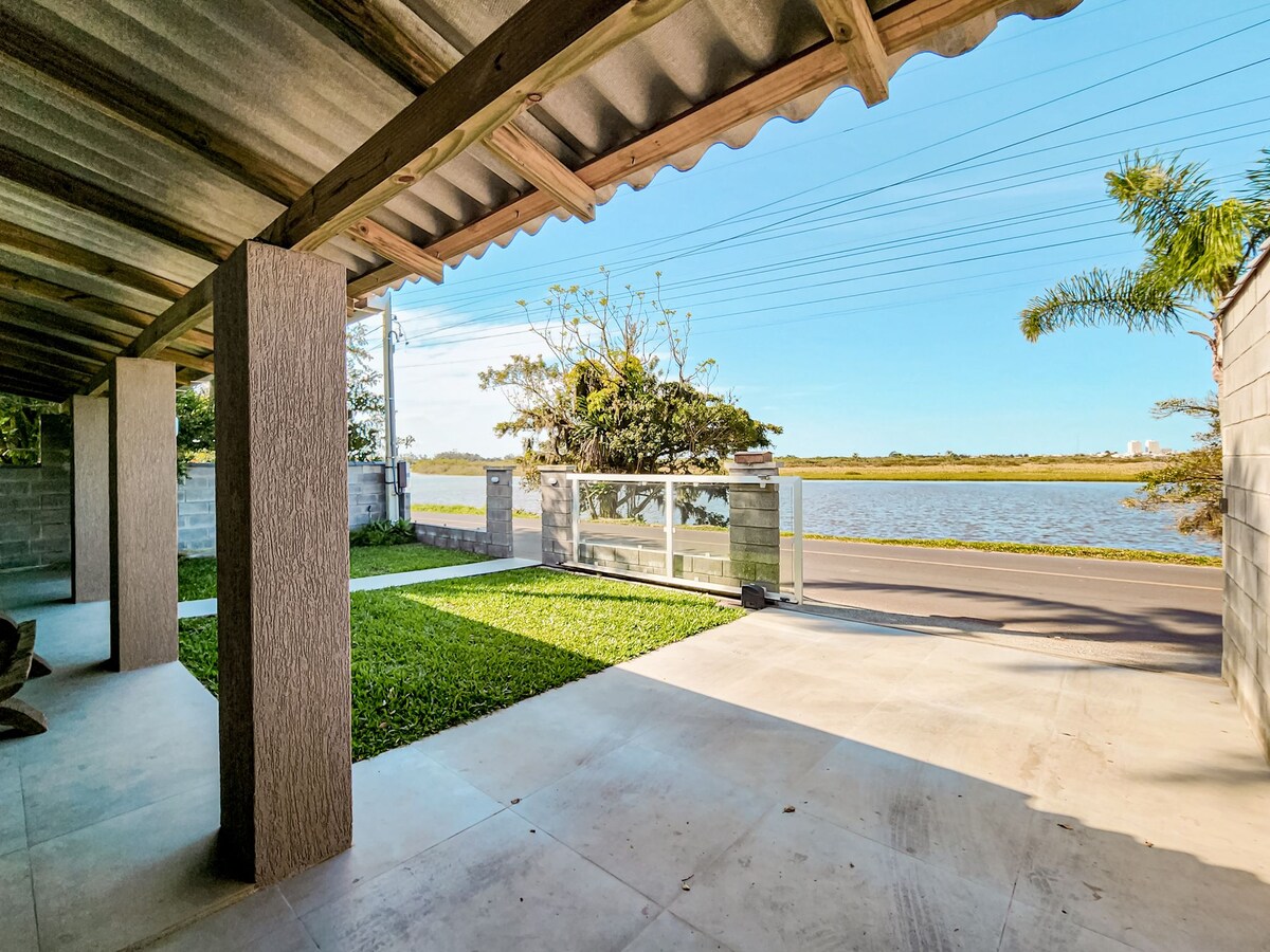 Casa super arejada em bairro tranquilo no Passo de Torres. A casa tem o pátio amplo e com acesso à lagoa. Além de estar a 2 quadras do mar. Local perto da foz do Mampituba onde venta muito para os amantes do kite surf!