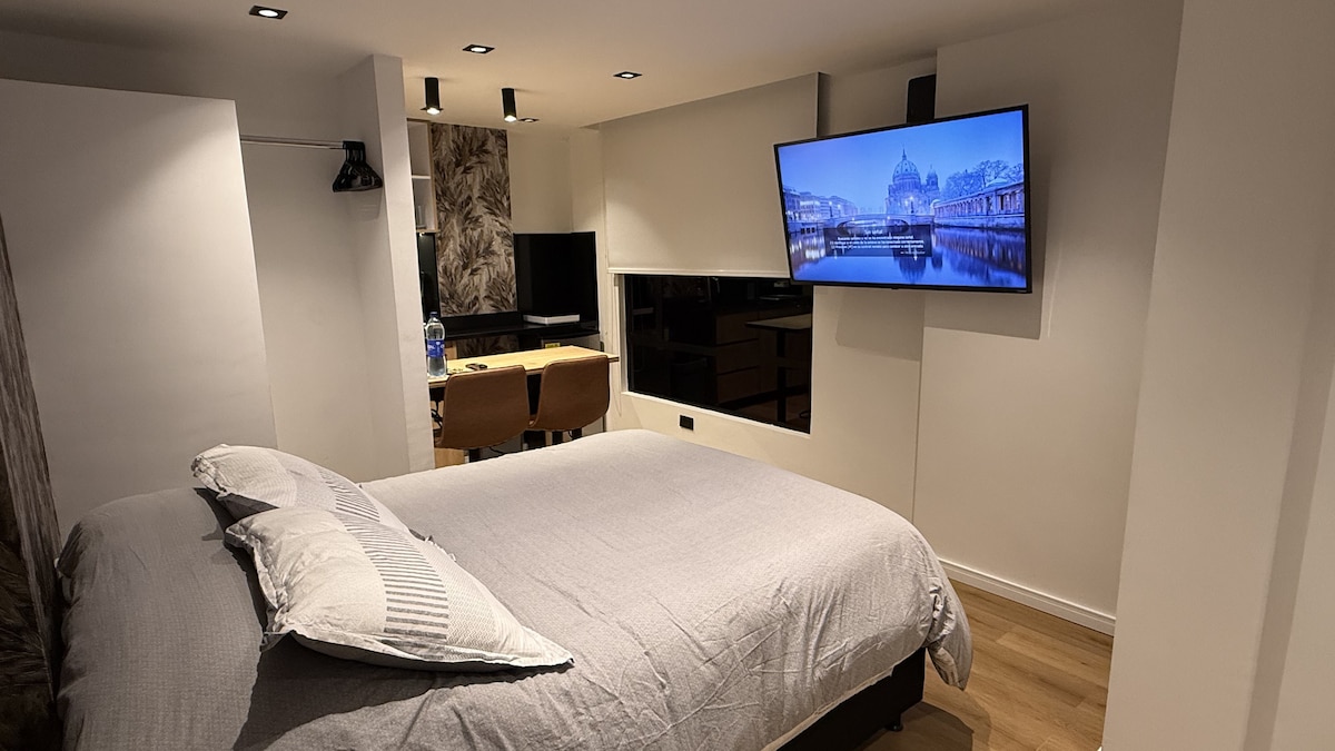 ✨ Moderne studioleilighet med kingsize-seng (2 × 2 m) og førsteklasses beliggenhet på Cra. 27 📍 Nyt et koselig og eksklusivt sted bare få minutter fra sentrum, Unicentro, Casona de Taminango og Bomboná. 🌿 Privat terrasse med spiseplass, sittegruppe og veggmaleri av en vulkan. 🚗 Gratis overbygd parkering inne i bygningen. 🎁 10 % rabatt på den neste turen din (tre netter eller mer). 💫 Perfekt for par, forretningsreisende eller avslappende ferier. 👉 Bestill nå og nyt et unikt opphold.