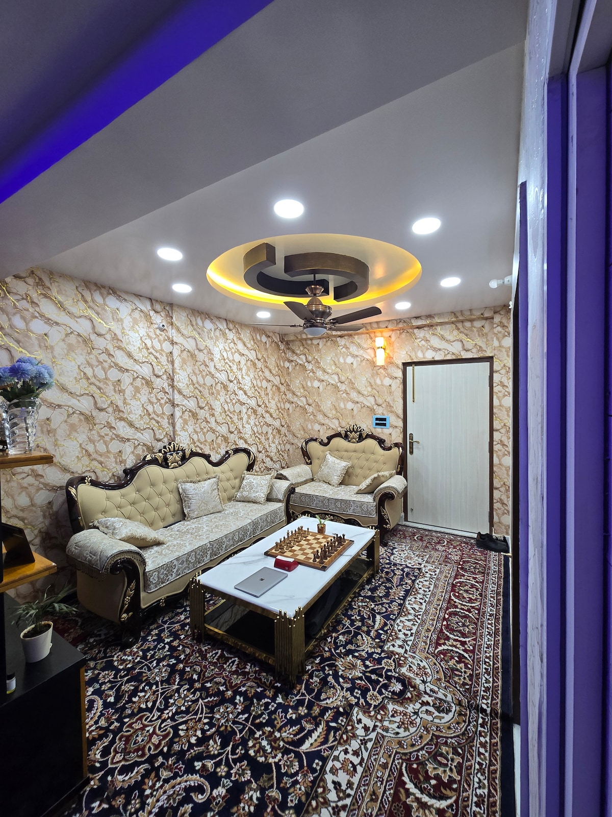 Gå inn i et varmt, innbydende sted i første etasje, rett foran huset. Dette koselige rommet har klassiske treverkdetaljer, myk belysning og en fredelig atmosfære – perfekt for å slappe av etter en travel dag. Beliggende i hjertet av Patna, er det ideelt for enslige reisende, par, familie eller korte utflukter, og tilbyr et rolig, hjemmekoselig sted hvor komfort og bekvemmelighet møtes.