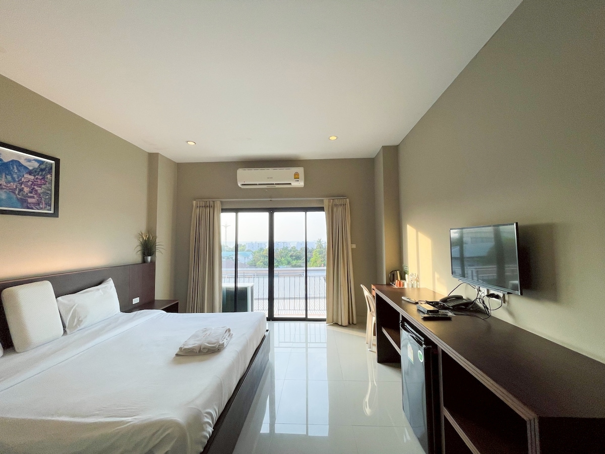 Nyt et fredelig og koselig tilfluktssted i vårt komfortable dobbeltrom, perfekt for par eller alenereisende som ønsker ekstra plass og komfort under oppholdet i det rolige Pratumnak-området.