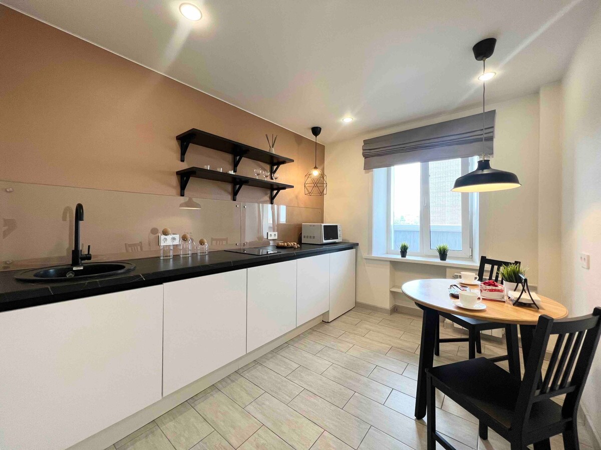 Luksusdesignerleiligheter. KONTAKTLØS INNSJEKKING (med passord) 37 M. Gorkogo str. Leiligheten ligger i sentrum. På to minutters gange er det et supermarked "Greenwich", i andre etasje, hvorav det er en god kafé. På fem minutter er bredden av byen, og elvebanestasjonen. Vaktet parkering på gårdsplassen. Praktisk transportutveksling. Våre fordeler: Perfekt renhold, noe som vil overraske deg. Unikt og moderne design som ikke gjør deg likegyldig.