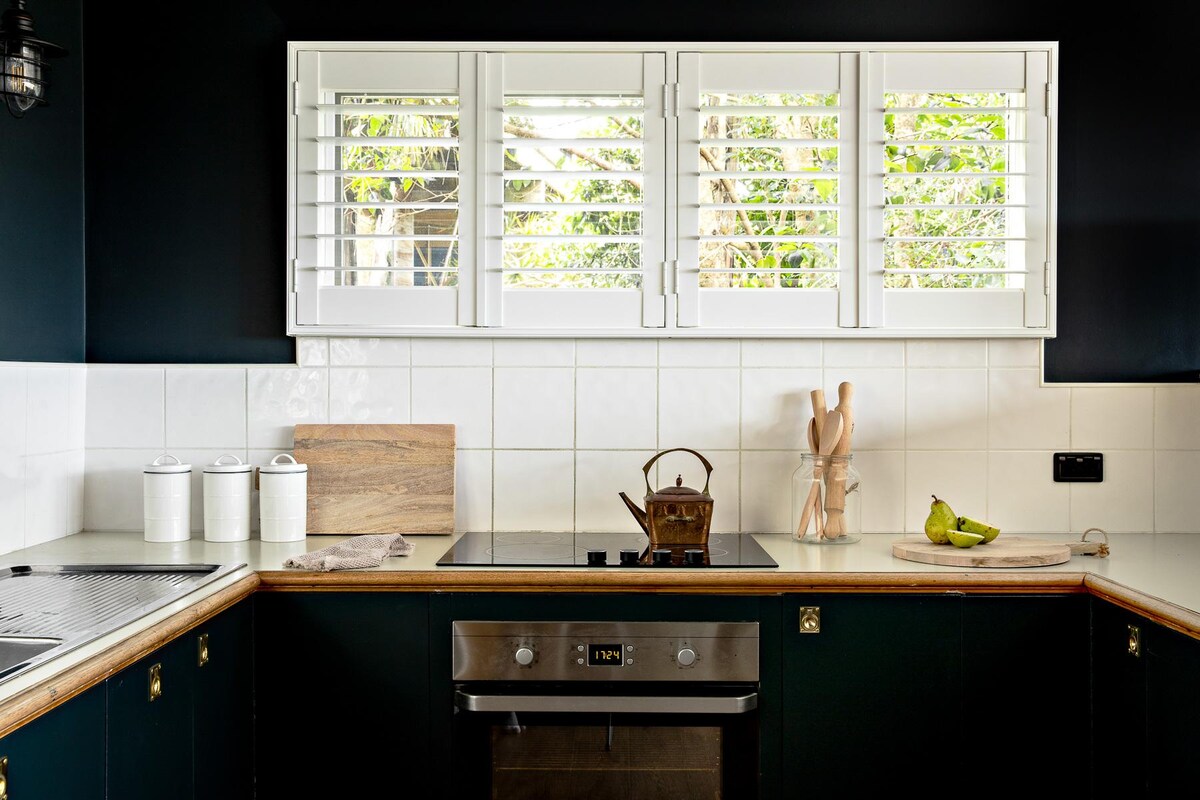 Sjarmerende ikonisk øyhjem, toetasjes hytte med tre soverom i et vakkert område med utsikt mot bushen, nær fergen. Dyreliv. Bakdekk. Veranda foran. Fem senger. Nede: ett soverom med queensize-seng og tilgang til bad. Ovenpå: seng 2, én queen size-seng og seng 3, én king size-seng, én enkeltseng, valgfri enkeltseng, barneseng. Det er to bad, dvs. ett bad med dusj, ett toalett, én vask i huset, og utenfor et bad med én dusjkabinett, ett toalett, én vask.
