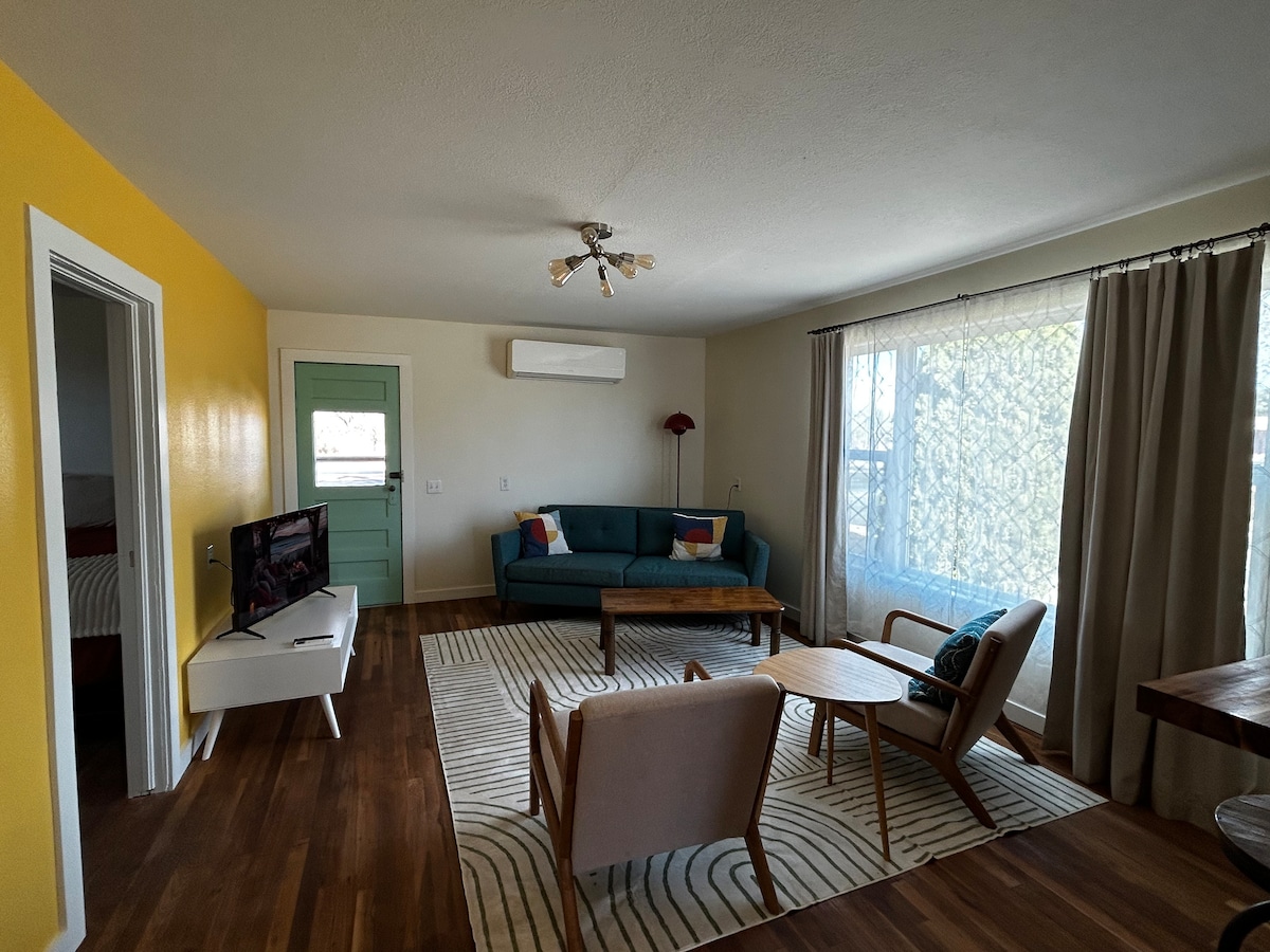 Take it easy at this unique and tranquil getaway. Come stay at my cozy little studio! Centrally located , with a DollarGeneral , Allsups and a burger joint within walking distance, safe-neighborhood, gated property. Covered parking on premises. Access to my place will be through the alley , which is a wide and clean alley. Children and pets welcome. With a chance to view our beloved pet sulcata tortoise “Stanley” whose burrow is right behind this unit, he is the 3rd largest tortoise in the world