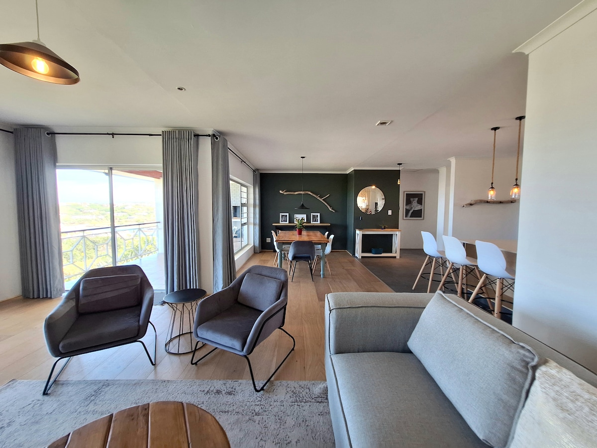 Hvis du trenger litt Time Out, er dette romslige, rolige og rolige feriehuset bare for deg. Dette nydelige selvbetjente, fullt møblerte hjemmet har tre soverom, tre komplette bad og et stort kjøkken i åpen planløsning, spisestue og stue. Det er også et romslig innendørs underholdningsområde hvor du kan Braai/grille på den innebygde braai, med rikelig med sitteplasser og et stort bord. Det er gangavstand til hav og elv. Trådløst nettverk med gebyr. Stor parkering. Det er også et plaskebasseng tilgjengelig.