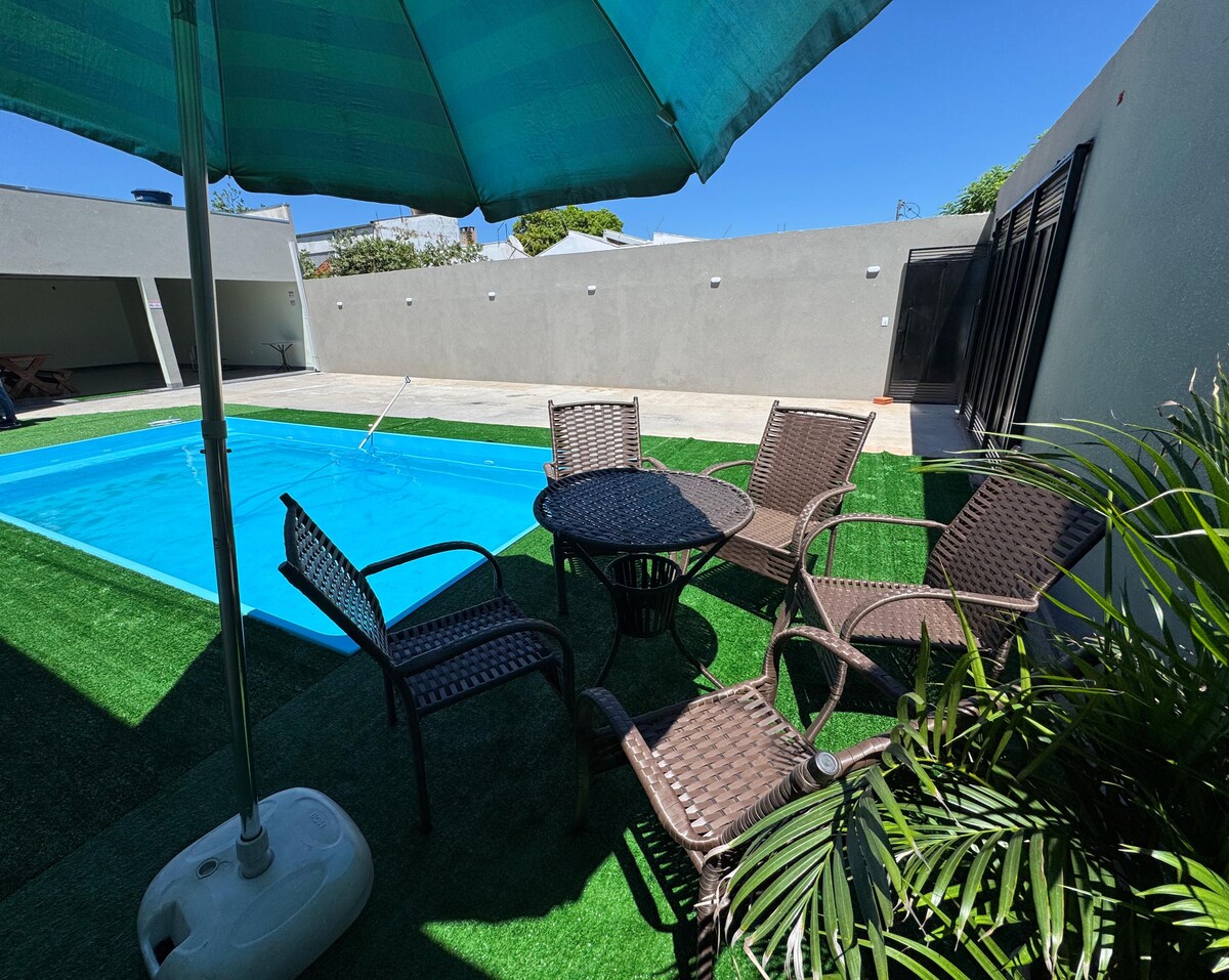 Nyt komfort, trygghet og ro i dette komplette huset som ligger i et trygt, inngjerdet nabolag, ideelt for familier eller grupper som ønsker praktiske løsninger og velvære. 🏡 Stedet Huset er fullt utstyrt og utformet for å gi en koselig opplevelse: • 1 komfortabel suite • to soverom med aircondition • Store og godt organiserte omgivelser • Koselig rom for hvile. • Kjøkken med kjøkkenutstyr Fem minutter fra sentrum, ti minutter fra Paraguay.