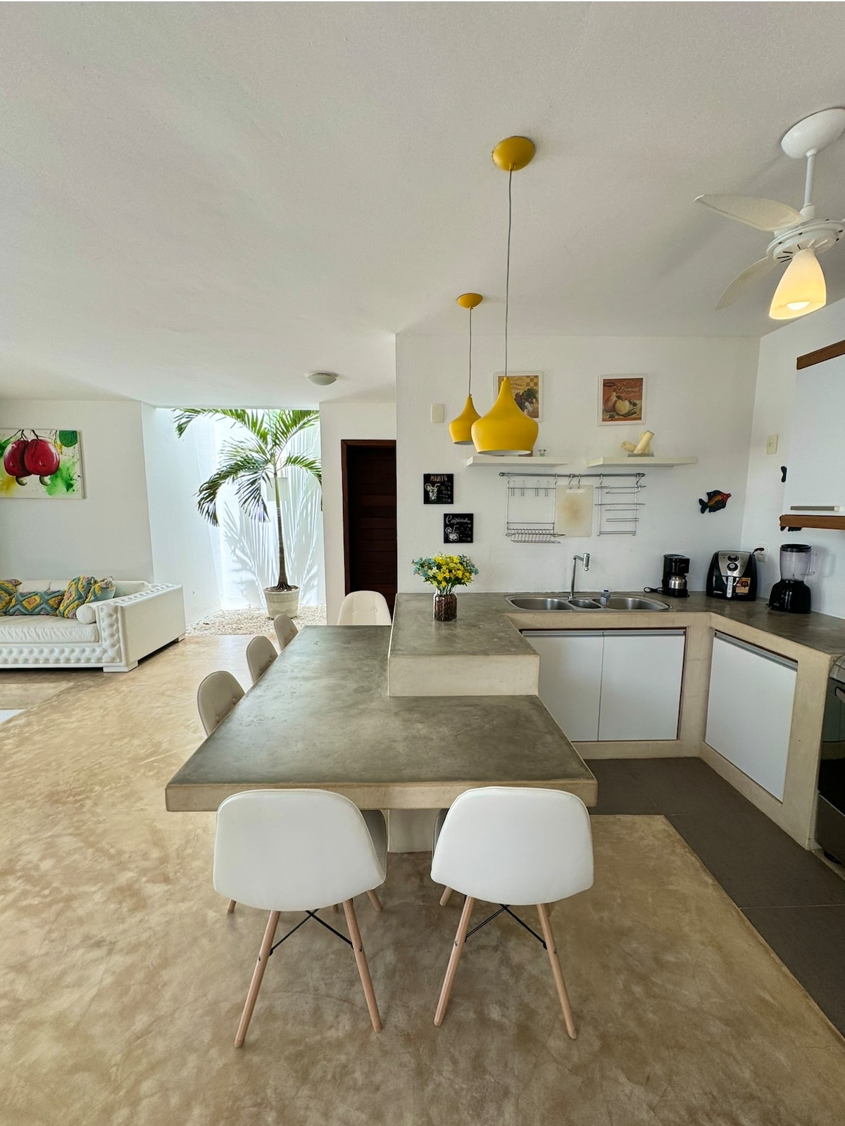Vila Amarela er et minikondominium med 5 hus. Alle husene har plass til opptil 4 personer. Det er to soverom: ett med dobbeltseng og ett med to enkeltsenger. Kjøkkenet er komplett med kjøleskap, komfyr, blender, sandwichmaker og alt utstyr slik at du kan tilberede måltidene dine. Fritidsområdet med svømmebasseng og grill deles med alle husene. Du leier et fullt utstyrt hus, i motsetning til et vertshus eller hotell hvor du bare leier et rom. Føl deg hjemme i Pipa!