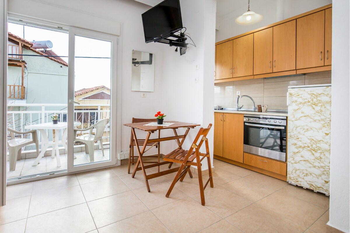 Leiligheten THALASSA består av en stue med nødvendig utstyr og et separat soverom med dobbeltseng, er moderne innredet, har panoramautsikt over havet og ligger bare tre minutter fra sjøen. THALASSA-LEILIGHETEN er romslig og ideell for familieferier.