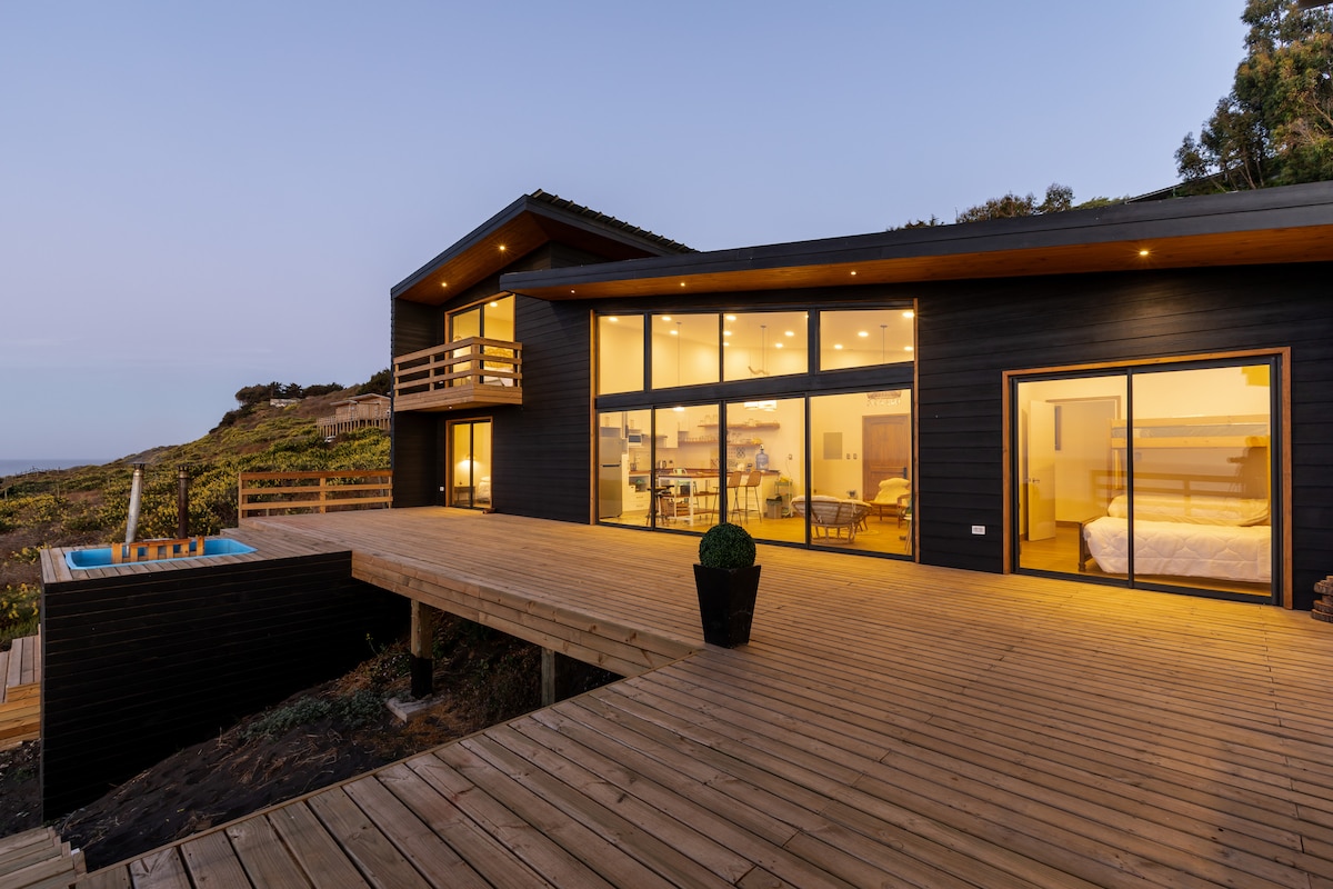 Fullt utstyrt minihus for to personer, med spektakulær utsikt over Buchupureo-kysten. Den har en stor terrasse og store uteområder for å nyte det naturlige miljøet. Kjæledyrvennlig. Selv om det er en del av en liten leilighet, er stedet helt privat. Den har direkte tilgang til stranden og parkering. Plassert mindre enn én km fra Buchupureo surfepunkt, tre km fra landsbyen og syv km fra Cobquecura. Ideell for å slappe av, surfe og slappe av ved havet.