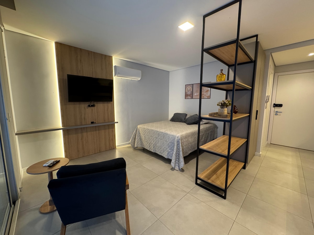 ✨️ Loft InCanto | Design og komfort i Parque Una Sofistikert feriested i det tryggeste nabolaget i Pelotas. • Høydepunkt: 42 tommers 180° TV, IPTV og strømming. • Komfort: varm/kald luft, oppvarmede kraner, premium seng med pute og komplett sengetøy. • Kjøkken: induksjon, stekeovn, airfryer, mikrobølgeovn og gourmetredskaper. • Fasiliteter: hårføner, strykejern, fasiliteter og nødsett. • Sikkerhet: døgnåpen resepsjon og overdekket parkeringsplass. Den perfekte balansen mellom det praktiske og velvære. Bestill opplevelsen din!