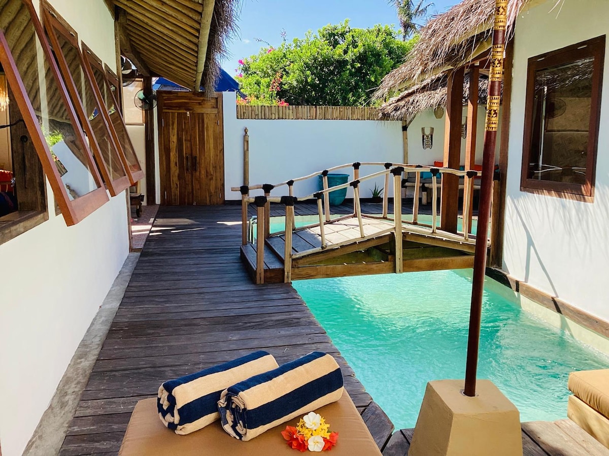 Welcome to our exquisite private bungalow, nestled in the heart of Gili Air and cocooned by a lush coconut grove. This tranquil haven offers an unparalleled retreat where you can unwind and rejuvenate. The bungalow boasts a private pool, inviting you to immerse yourself in your private pool and soak up the tropical paradise that surrounds you. With its secluded location and enchanting ambiance, this is the perfect destination for a truly unforgettable getaway.