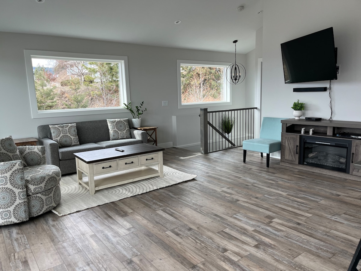 Velkommen til OnceUponAHill – en moderne, toetasjes suite som ligger i fjellsiden, halvveis mellom Skaha- og Okanagan-innsjøene. Denne plettfrie, fullt utnevnte suiten byr på fantastisk utsikt over byen, innsjøene og dalen fra hvert vindu. Dette lyse og romslige tilfluktsstedet er gjennomført designet for komfort og stil, og er perfekt for kresne gjester som setter pris på uberørte områder, eksklusive fasiliteter og en fredelig atmosfære. MERK AT VI IKKE KAN TA IMOT KJÆLEDYR.