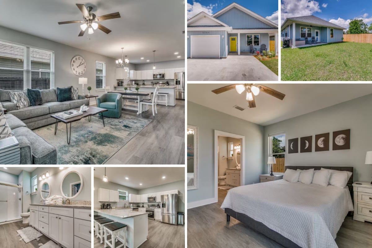 Dette romslige, vakkert innredede hjemmet er designet med gjester i tankene! Det er perfekt for venner og familie som ønsker å nyte komfort, privatliv og bekvemmelighet til stranden! Dette hjemmet ligger på en blindvei, og har tryggere rengjøringsprodukter og en fullt inngjerdet bakgård hvor du kan slappe av og nyte en rolig kopp kaffe eller få et glimt av Blue Angels. Avstand til: NAS Pensacola - 4,8 mi Perdido-strender - 8 km Pensacola lufthavn - 17 km Pensacola Beach - 20 km Gulf Shores, AL- 24 mi