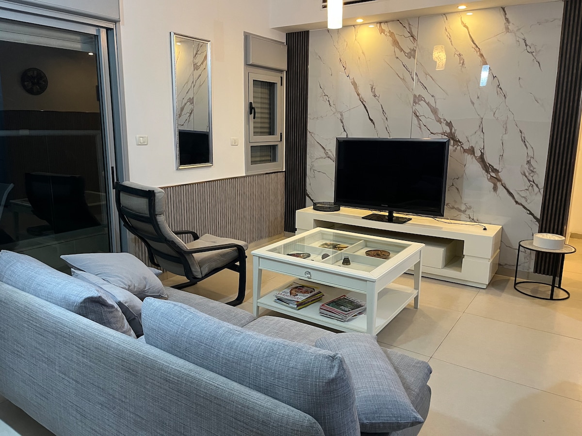 En vakker boutiqueleilighet med tre soverom, designet av eieren, som er interiørdesigner. Et stort hovedrom med badekar og tilhørende terrasse. Et flott kjøkken for å lage mat og et spiseområde, boom shelter room. for å spise og nyte all den eksklusive stilen. ligger i sentrum av byen 3 minutters spasertur til hovedgaten "Ahauzza" hvor du kan finne alt fra mat, restauranter, barer, banker og supermarked. liten butikk, sentrale busser