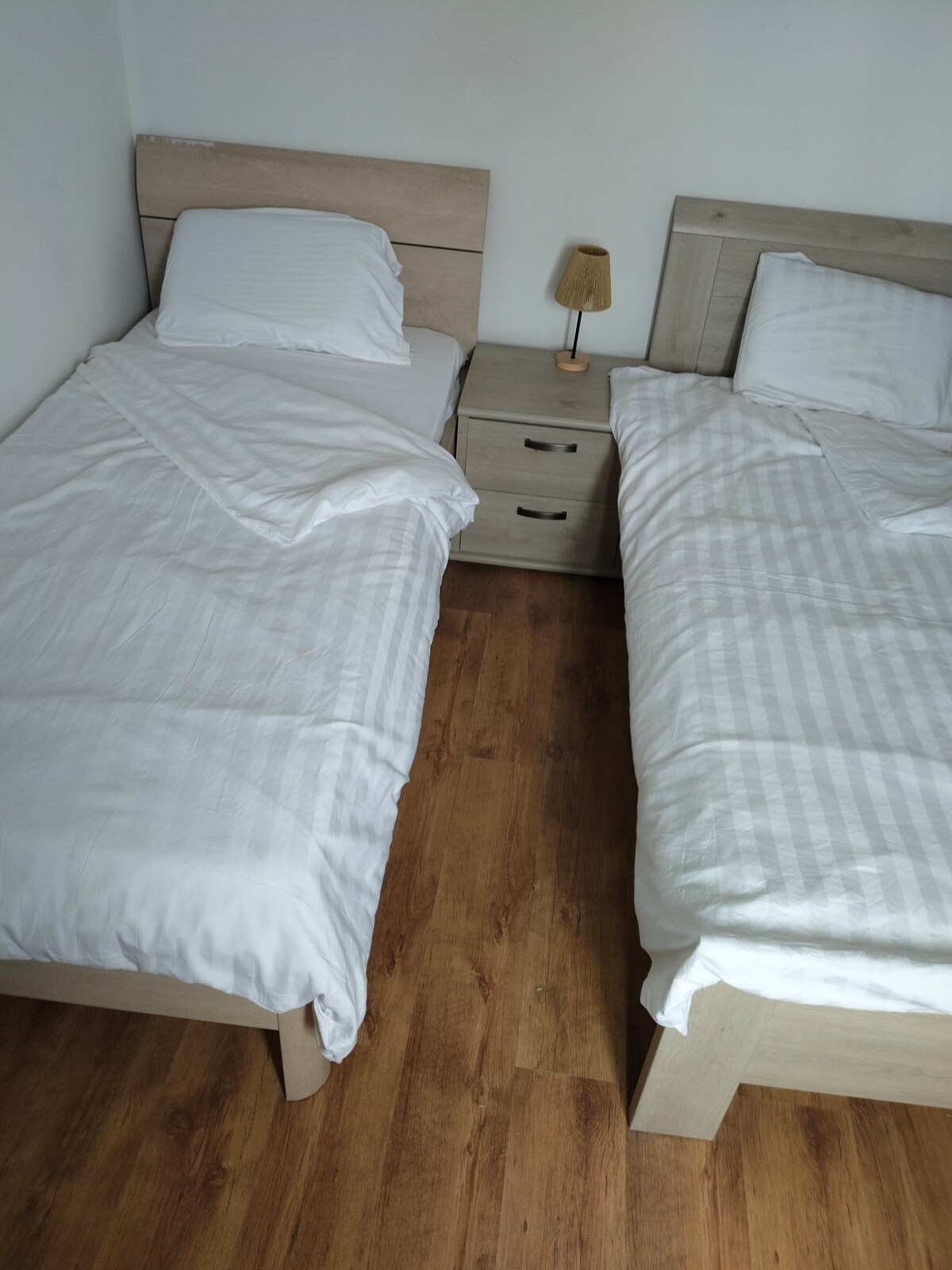 Overnattingsstedet er et gammelt arbeiderboligområde (1930) som har blitt renovert. Du har hele stedet (100 kvm) for deg selv, som har: – en inngang med utstyrt kjøkken – … åpner mot et sitteområde med sofa og TV - et bad (dusj, vask, toalett) – ovenpå, et første soverom (dobbeltseng), et andre soverom (dobbeltseng) og et bad (badekar, vask, toalett) – tredje soverom (dobbeltseng) tilgjengelig via ett av de to andre – en kjeller med vaskemaskin og klesstativ