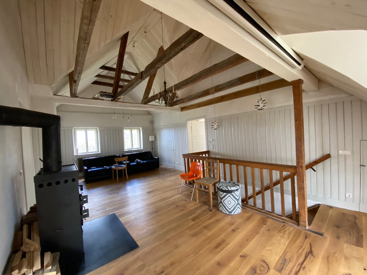 Fløtehus – loft med takterrasse ved elven