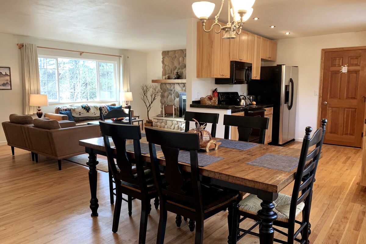 Samle familien og vennene dine for et hjem i bohemsk stil med fantastisk fjellutsikt. Føl en følelse av fred ved å sitte på hengestolene. Lag et hjemmelaget måltid med det fullt utstyrte kjøkkenet vårt. Legg deg tilbake og slapp av, velg favorittfilmen din og spill den på en 110"+ HD-projektor utstyrt med lydanlegg. Popcornmaskin med smør og popkornkrydder. Nyt naturen på en tomt på 16 000 kvm! Basketballbøyle på stedet. Stier, solnedganger og mer.