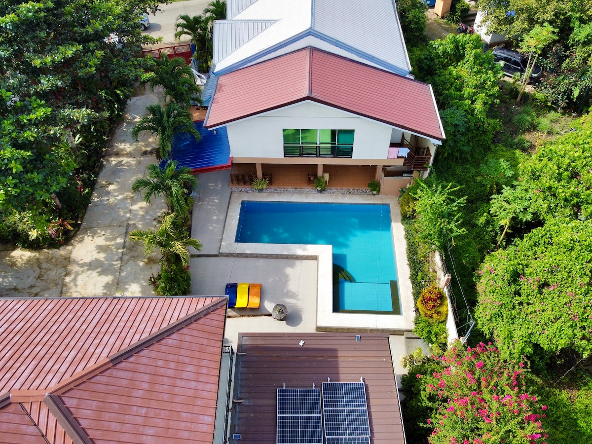 Enjoy the convenience of a private accommodation for your group of 12 people, enclosed in a secure compound with private parking for your car(s). Exclusive access to private pool, outdoor kitchen, dining and lounge area. Aircon and wifi included. The garden is a paradise of vibrant plants and flowers. Located just 4 min from the airport, 8 min from Alona Beach, this is the perfect location for a budget stay in Panglao. Next to Alturas Supermarket if you need fresh food and essentials.