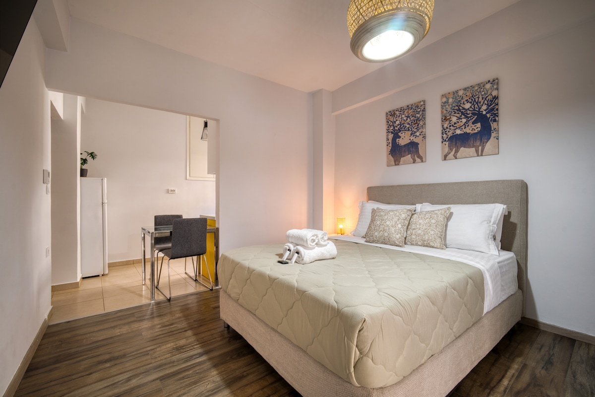 En veldig unik og estetisk tiltalende 50 kvm studio, i gangavstand fra Akropolis og alle de arkeologiske severdighetene. Utstyrt med innendørs jacuzzi, raskt trådløst nettverk, aircondition, Netflix-TV, doble vinduer, fullt utstyrt kjøkken og en søt balkong med utsikt over hagen for å gjøre oppholdet ditt uforglemmelig! Den ligger i et trygt og livlig nabolag med direkte tilgang til all offentlig transport, og den er omgitt av lokale restauranter, kafeer og butikker. Det beste stedet å slappe av etter en travel dag med å utforske vakre Athen!