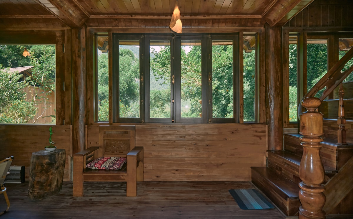 Căn phòng tiêu chuẩn cho 2 người lớn, có cửa kính nhìn toàn cảnh núi non thanh bình. Diện tích 30m2 Giường cỡ King