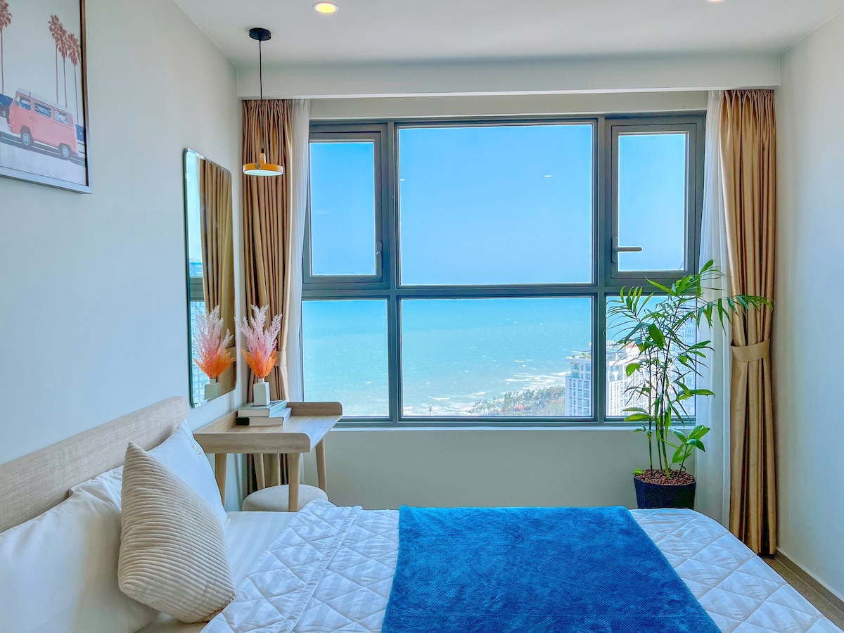 Leiligheten er klassifisert i den beste utsikten i bygningen. Er et levende bilde. Fra balkongen kan du se hele havbyen VungTau og solnedgangen over havet. Leiligheten er fullt møblert og egnet for gjester å bo og jobbe hjemmefra på nettet lenge. Skapsengen er designet med naturlig og fast tre. Balkongen er bred og lang. Du kan sole deg, jobbe, lese bøker , kaffe om morgenen eller drikke et glass vin og se solnedgangen over havet.