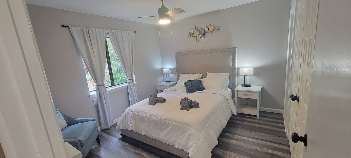 Follow the enchanting stone path to a private getaway where romance and connection await. Enjoy the ambiance of the starlit sky while cuddled up on the hammock or around the fire. Cozy up on the king-size bed and relish every moment of your stay. Indulge in a bottle of wine and relax by soaking in the luxurious claw-foot tub. Wake up to the tranquil sounds of the forest, savoring the morning with coffee on the porch. Escape the everyday and embrace what matters most at The Greystone Cottage.